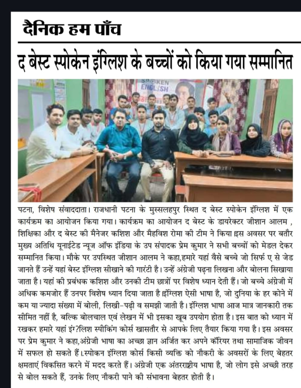 Join 10,000+ students learning English with The Best Spoken. Patna-based institute with online classes across globe. Expert instructors, personalized coaching, flexible timings.